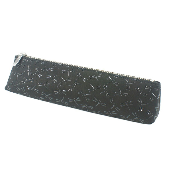 印伝 甲州印伝 印傳屋 上原勇七 ペンケース 筆箱 筆入れ 4604 とんぼ 黒地×黒漆 鹿革 本革 レザー シンプル 和柄 ブランド 冬物 冬ギフト クリスマス 贈り物 YM02