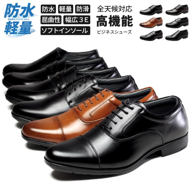 ウォーカブル 防水軽量ビジネスシューズ 全天候型 オールウェザー 6種類 幅広3E 防滑 屈曲 ソフトインソール