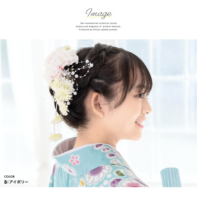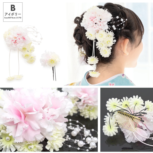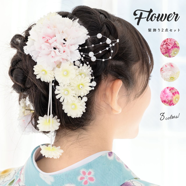 髪飾り 和装 卒業式 袴 花 成人式 振袖 2点セット 牡丹 雛菊 ぶら飾り ピンク 白 ビーズ 送料無料