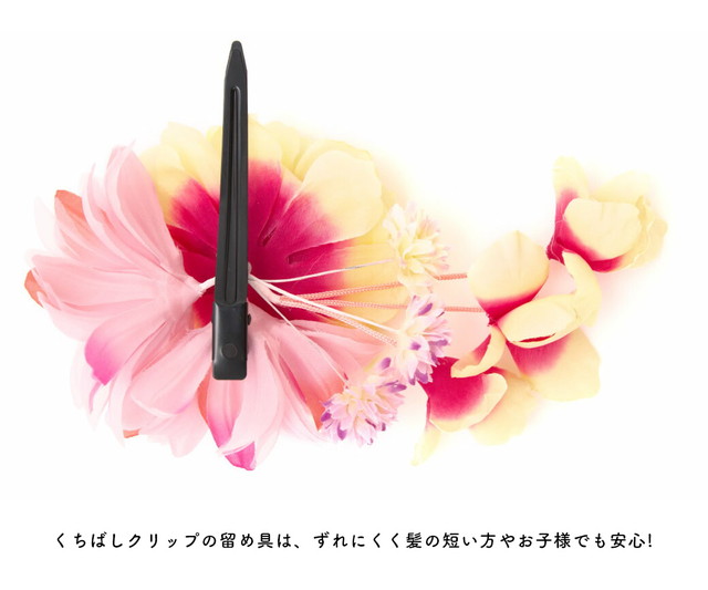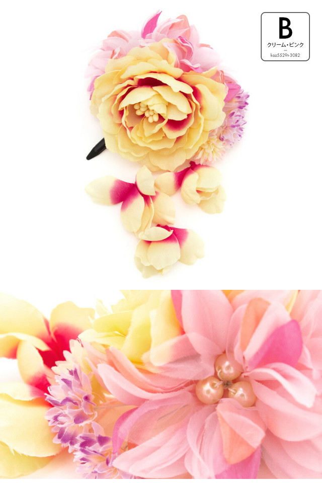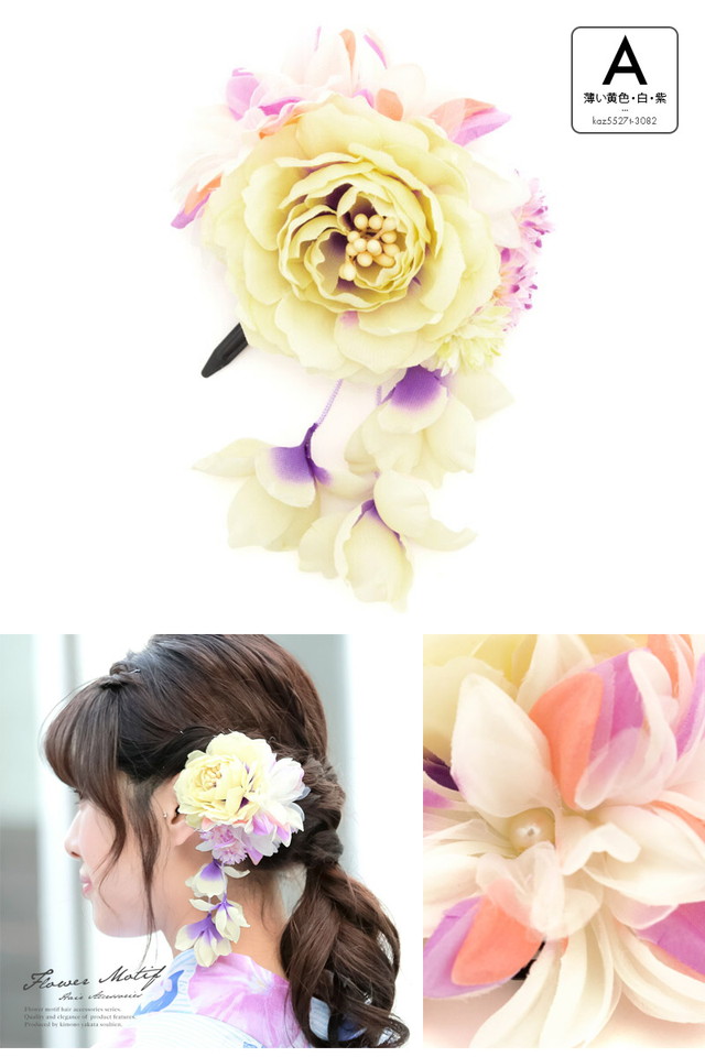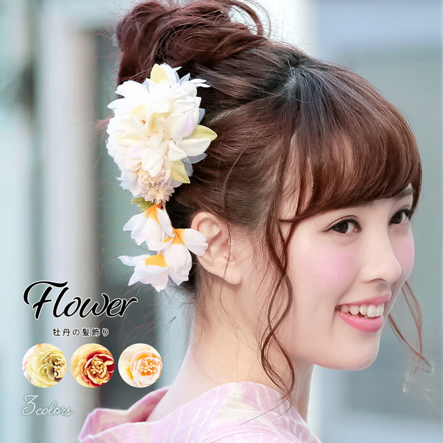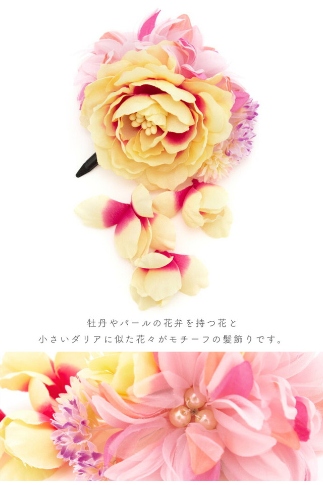 髪飾り 和装 花 浴衣 夏 フラワー 牡丹 ぶら飾り 黄色 クリーム 白 くちばしクリップ ショートヘア 送料無料