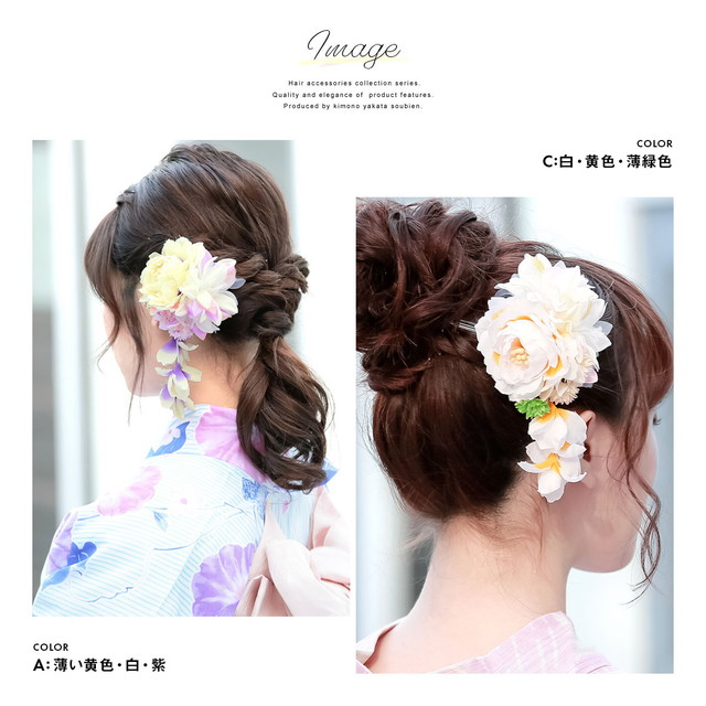 浴衣や夏着物を美しく彩る、花の髪飾りです。