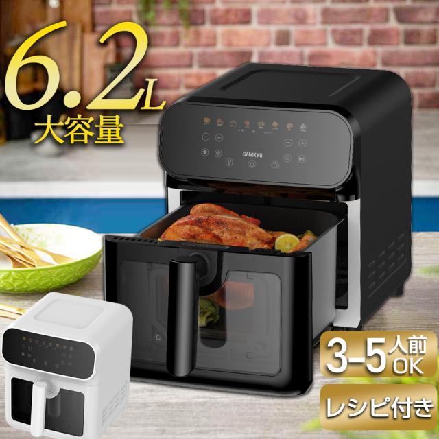 \新春セール★17900円→8990円!/ノンフライヤー 2025 電気フライヤー 6.2L 大容量 エアオーブン エアフライヤー レシピ付 家庭用 低カロリー ダイエット ヘルシー ノンオイルフライヤー コンパクト 健康 食洗機対応 温度調整 フライヤー