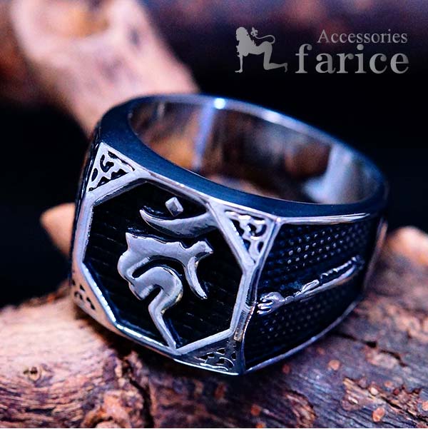 梵字 サンスクリット 不動明王 酉年生まれの守り本尊 メンズ ステンレス リング 指輪