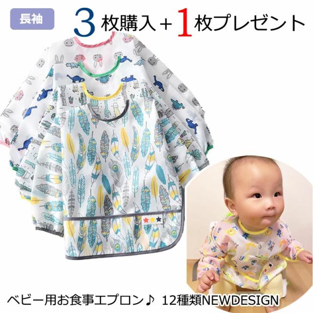 【3枚購入+1枚プレゼント 】送料無料 ベビー用エプロン ポケット付き 長袖 食べこぼしガード 長袖タイプ 防水食事用エプロン 動物 新生児 お食事エプロン 子供用 幼児 スタイ 食事用エプロン ベビーエプロン 赤ちゃん 男の子 ベビー用品 出産祝い