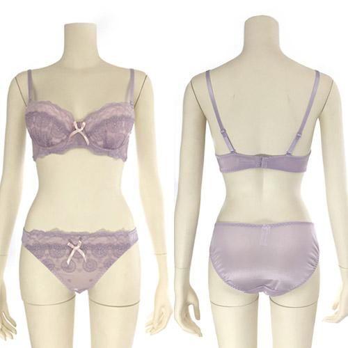 【グラシア】 ブラセット ブラショーツ ランジェリー 下着 ブラ セット ブラ&ショーツ カップ バストライン パッド フェミニン モールドカップ リボン 花柄 愛らしい 自然 柔らか レース フルバック Tバック ブラック ライトパープル