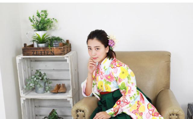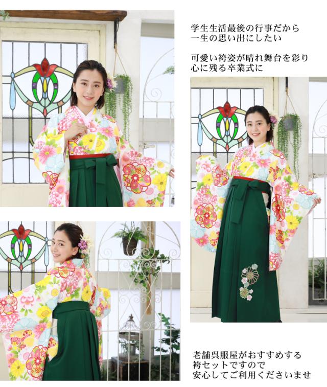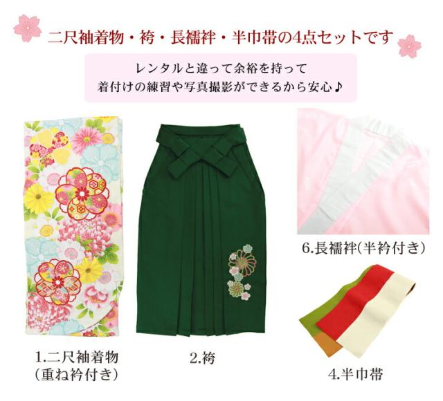 【販売】〔zu〕当店オリジナルデザイン 袴 セット 卒業式 女性 4点フルセット 購入 卒業式袴セット 2尺袖着物&袴「白地に七宝と菊」レトロ 大学 販売 安い