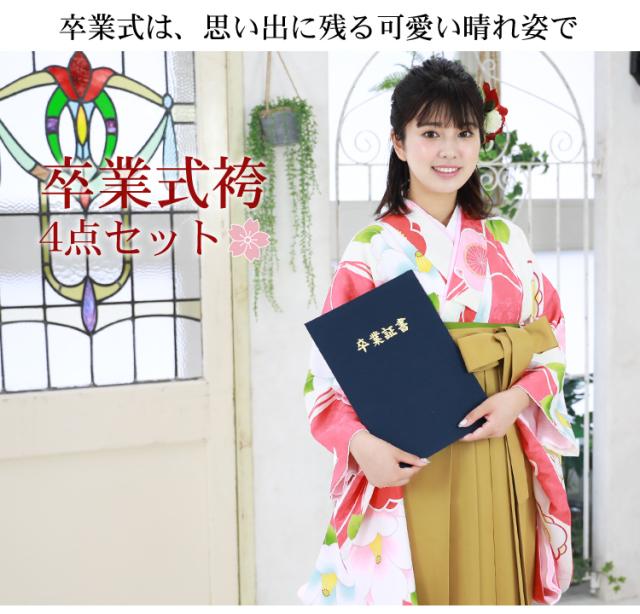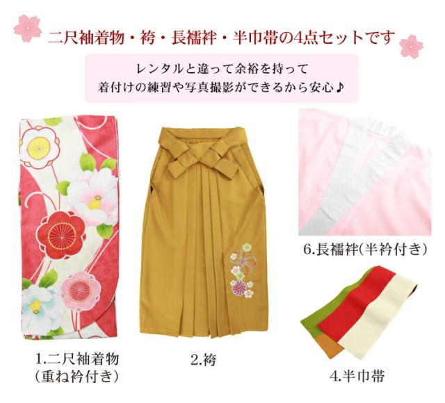【販売】〔zu〕当店オリジナルデザイン 袴 セット 卒業式 女性 4点フルセット 購入 卒業式袴セット 2尺袖着物&袴「白・赤ピンク地に梅と椿」レトロ 大学 販売 安い