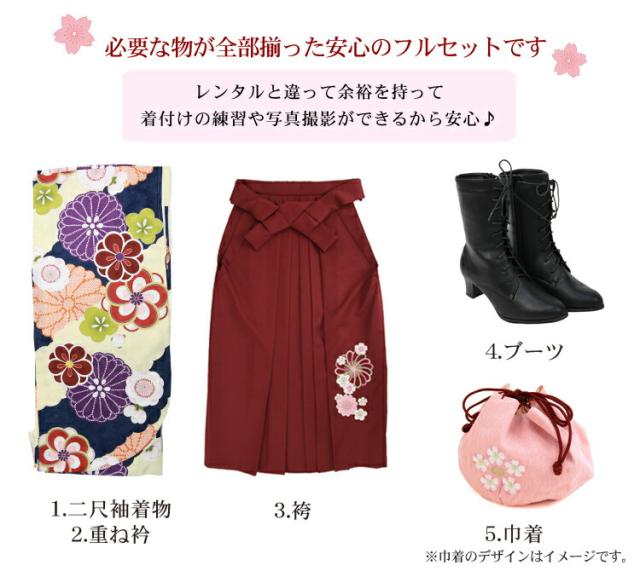 着物・袴・ブーツ・巾着・長襦袢(半衿付)