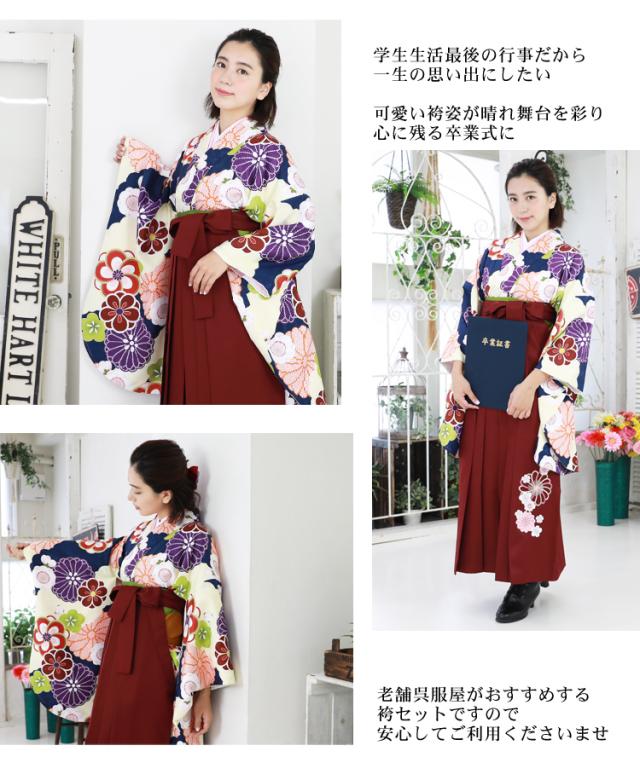 【販売】〔zu〕当店オリジナル 袴 セット 卒業式 女性 ブーツ付き16点フルセット 購入 卒業式袴セット 2尺袖着物&袴 「クリーム地に菊・梅と雲」ブーツ レトロ モダン 大学 販売 安い