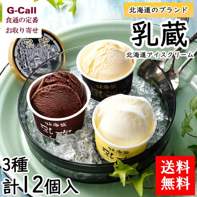 江戸屋 乳蔵 北海道アイスクリーム 3種12個 送料無料 スイーツ デザート プレミアム バニラ 北海道 濃厚 甘味 十勝牛乳 お取り寄せ ギフト 贈答 お祝い