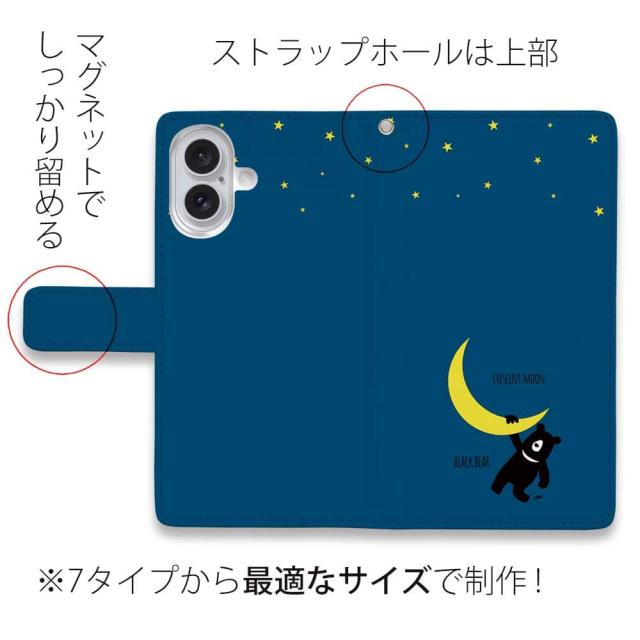 スマホケース 手帳型 カード収納 マグネット iPhone17 Pro Max iPhone Air iPhone16e iPhone16 Pro Max 16 Plus 15 Pro Max Xperia 10 VII Galaxy AQUOS ARROWS Pixel10 XL 熊 クマ 用品 雑貨 三日月とツキノワグマ(wakat)