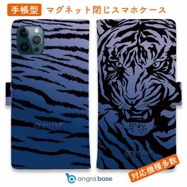 スマホケース 手帳型 カード収納 マグネット iPhone17 Pro Max iPhone Air iPhone16e iPhone16 Pro Max 16 Plus 15 Pro Max Xperia 10 VII Galaxy AQUOS ARROWS Pixel10 XL Genuine 虎 タイガー ブルー