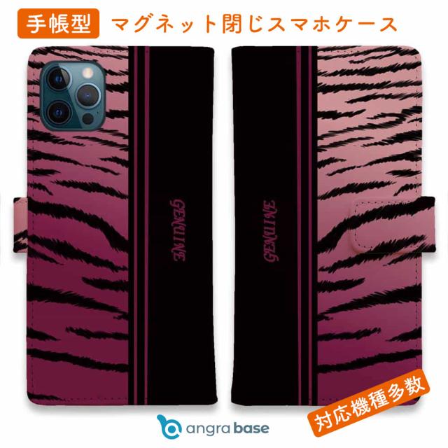 スマホケース 手帳型 カード収納 マグネット iPhone17 Pro Max iPhone Air iPhone16e iPhone16 Pro Max 16 Plus 15 Pro Max Xperia 10 VII Galaxy AQUOS ARROWS Pixel10 XL Genuine 虎 タイガー ピンク ライン