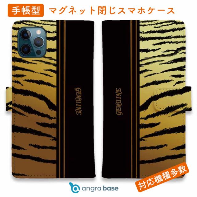 スマホケース 手帳型 カード収納 マグネット iPhone17 Pro Max iPhone Air iPhone16e iPhone16 Pro Max 16 Plus 15 Pro Max Xperia 10 VII Galaxy AQUOS ARROWS Pixel10 XL Genuine 虎 タイガー ゴールド ライン