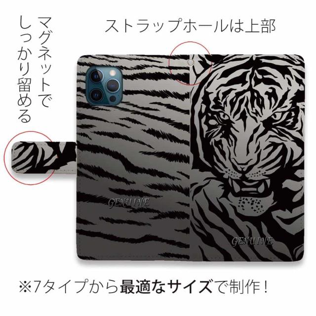 スマホケース 手帳型 カード収納 マグネット iPhone17 Pro Max iPhone Air iPhone16e iPhone16 Pro Max 16 Plus 15 Pro Max Xperia 10 VII Galaxy AQUOS ARROWS Pixel10 XL Genuine 虎 タイガー シルバー