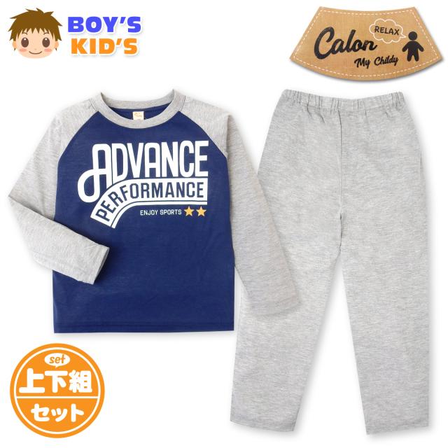 【送料無料】男児 キッズ 長袖 パジャマ 天竺素材 上下組 ラグラン ロゴ 子供服 男の子 120cm 130cm my-0016b【メール便対応】