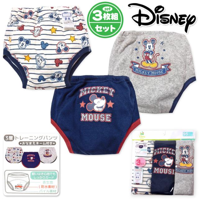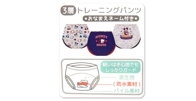 【送料無料】男児 ベビー 3枚組 トレーニングパンツ Disney/ディズニー ミッキー 3層構造 肌着 下着 男の子 iw-0144b【メール便対応】