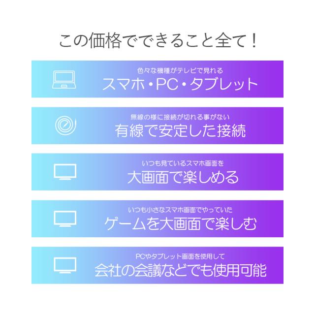 ※本製品は、AirPlay、Miracast、DLNAに対応した各種スマートフォン(iPhone/Andrond)・各種タブレット・各種パソコン(Mac・windows)にてご使用いただけます。ご購入の前に必ず対応情報をご確認ください。