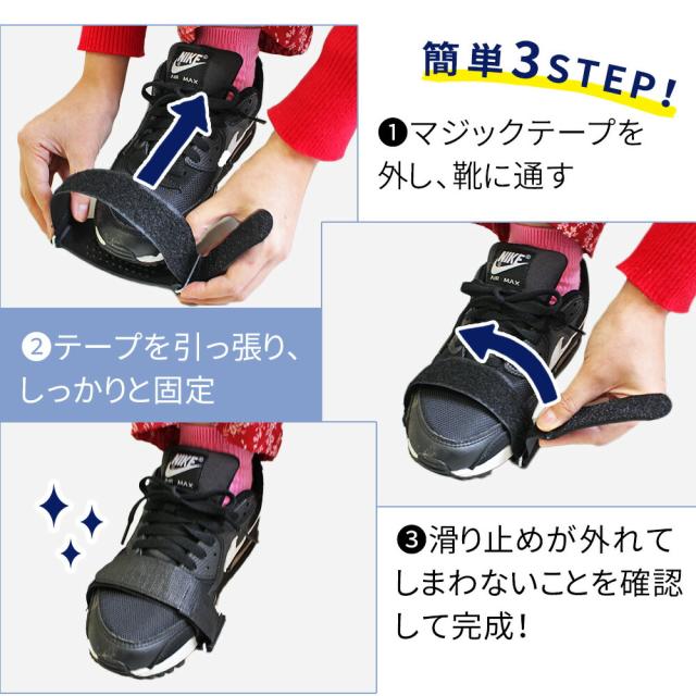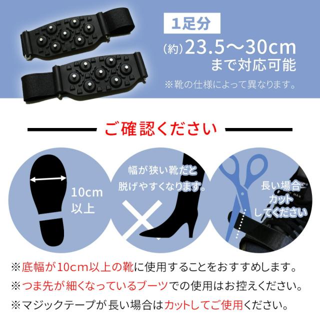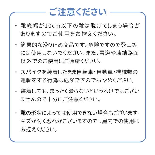 ※簡易的な滑り止め商品です。危険ですので登山等には使用しないでください。また、雪道や凍結路面以外でのご使用はご遠慮ください。
