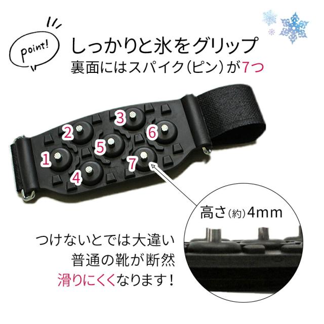 簡易/簡易スパイク/取り外し/可能/簡単/装着/スノー/スパイク/アイス/アイススパイク/アイゼン/滑り止め/滑り止めスパイク/アイスグリップ/かんじき/積雪/雪/氷/雪道/凍結/路面凍結/凍った道/道路/通学/通勤/散歩/ウォーキング/ヒール/スニーカー/パンプス/安全/着脱/着脱式/スリム/軽量/釣り/釣行/堤防釣り