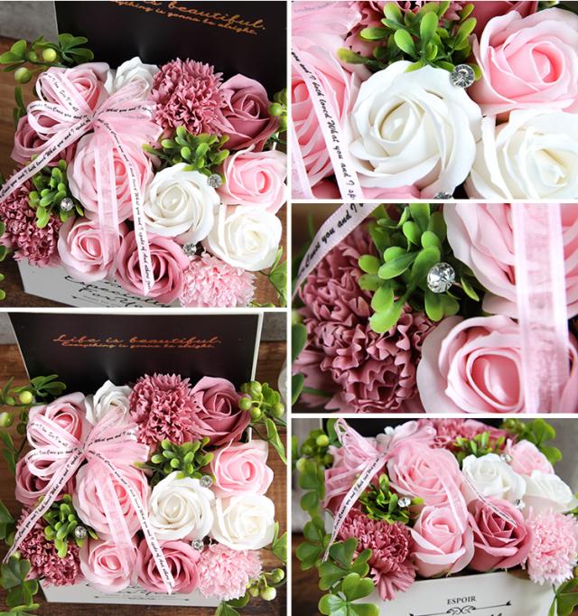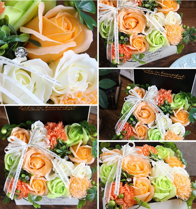 ソープローズ/ソープカーネーション/アートグリーン/リボン/ボックス/ ご希望の方にメッセージカード/お取扱説明書/手提げ袋