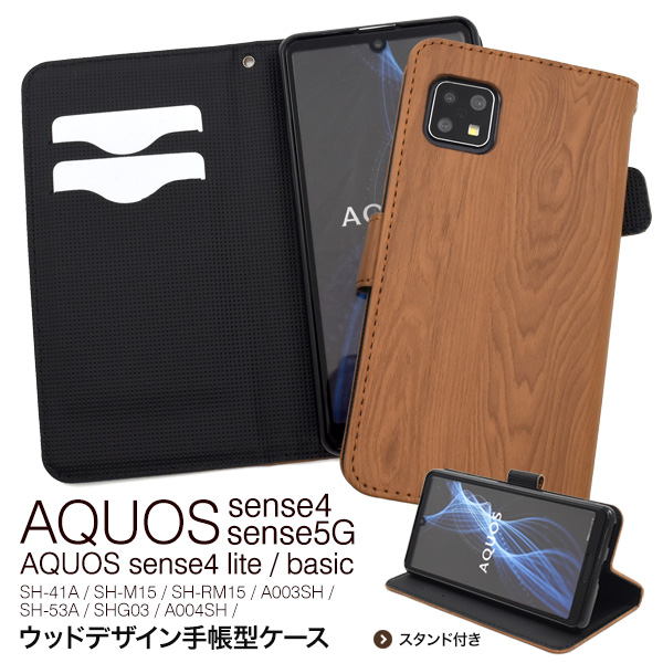スマホケース AQUOSsense4 SH-41A SH-M15用 AQUOSsense4lite SH-RM15用 AQUOSsense4basic A003SH用 ウッドデザイン 手帳型ケース AQUOSsense5G 共通 保護 カバー 傷防止 横開き ナチュラル アクオスセンス4 jeans denim