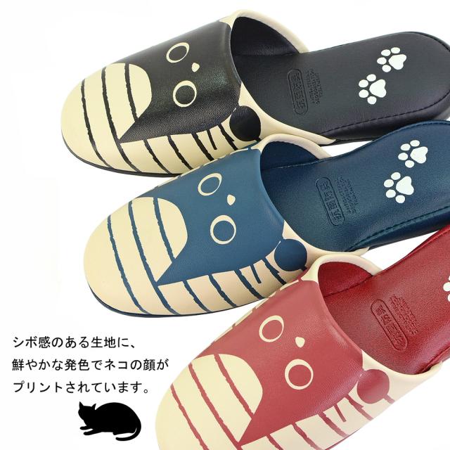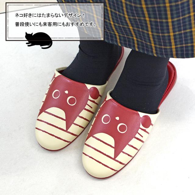 スリッパ ネコフェイス柄 フリーサイズ 室内スリッパ トイレ キッチン 洗面所 抗菌 防臭 はっ水 拭ける おしゃれ トイレスリッパ ビニールスリッパ お手洗い 便所 レストルーム レディース 男女兼用 (ak-ts151) カカトふっくら履きやすい かわいい 前とじ