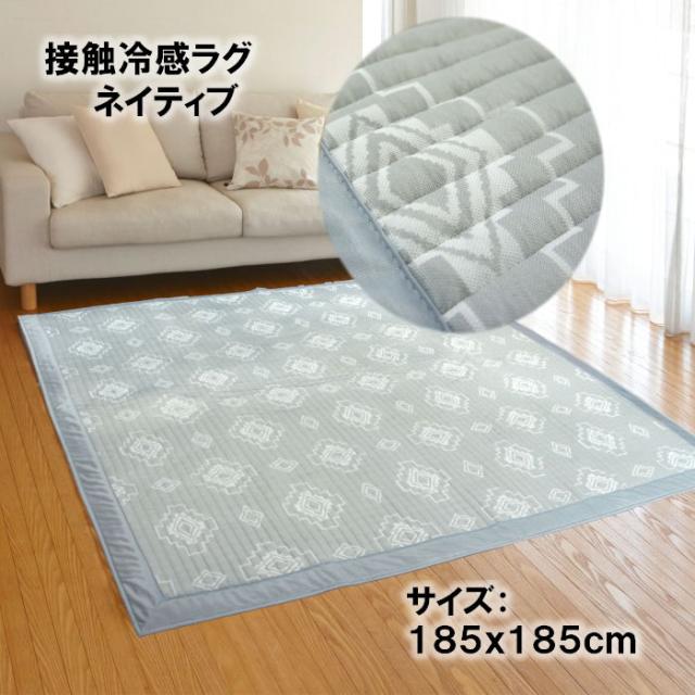 185x185cm 2畳用 ひんやりクール冷感ラグ「ネイティブ」クールでかっこいい幾何柄 ご家庭で丸洗いOK