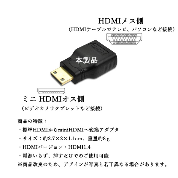 3ヶ月保証付 mini ミニ HDMI オス to HDMI メス 変換 アダプタ (管理S) 送料無料