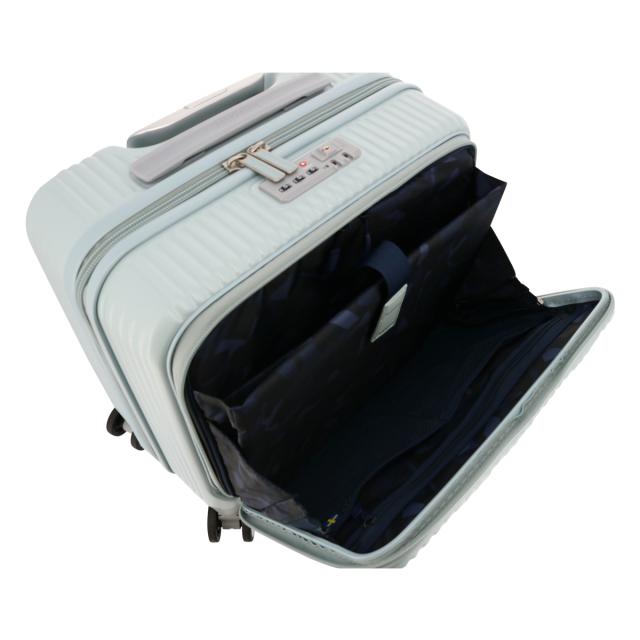 フロントポケット、TSAダブルダイヤルロック、ブレーキシステム、消音双輪キャスター、ボトムハンドルと多機能でありながらスタイリッシュな機内持込サイズケースです。3ルーム収納方式で、ビジネスでもプライベートでも用途に合わせた収納が可能。また、フロントポケットはワイドオープン仕様で、省スペースで収納も可能です。
