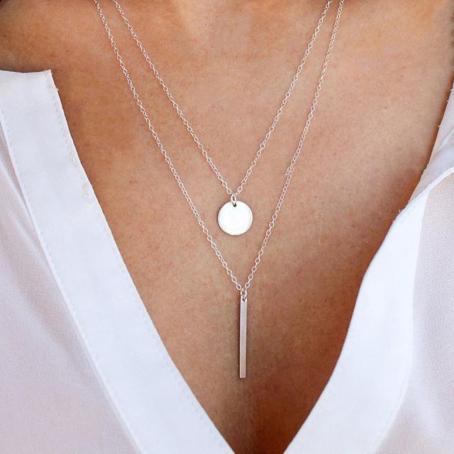 シンプル コイン バー モチーフ 2連ネックレス