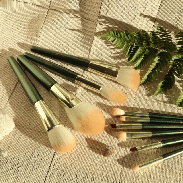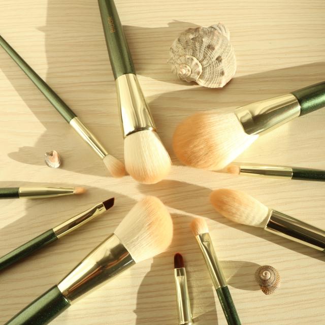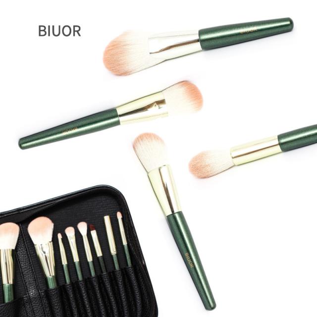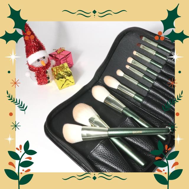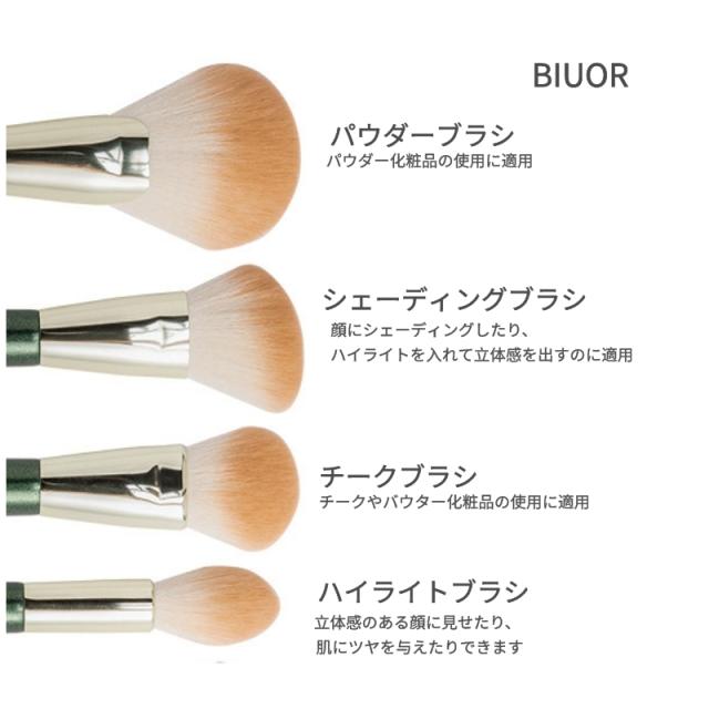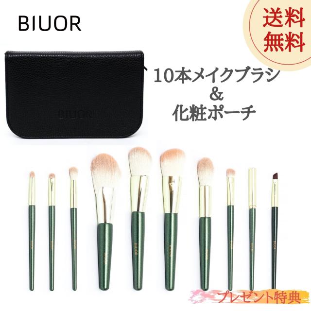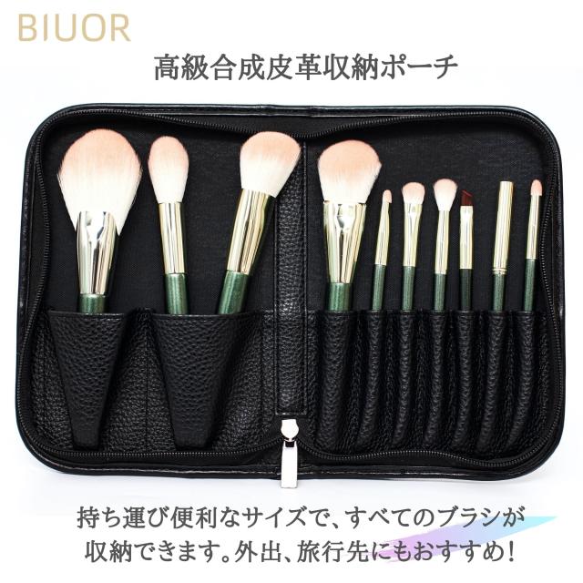 【送料無料】 BIUOR 10本メイクブラシセット アイシャドウ 化粧ブラシ プレゼント 高級タクロン 毛量たっぷり 超柔らかい 専用ポーチ付 携帯 収納 ケース FANCY シリーズ GREEN プレゼント