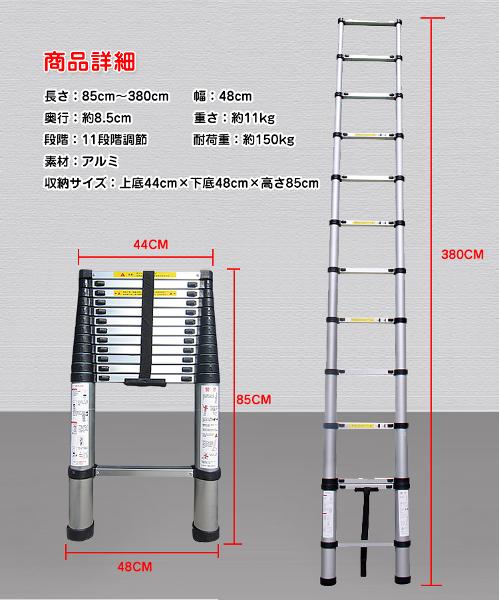 ■11階段まで1段づつ引き伸ばし85cm〜380cmまで長さ調整可能!
