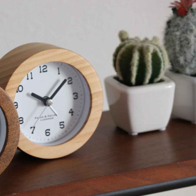 天然木の優しい雰囲気が魅力のアラームクロックです。素材そのものの魅力を活かしたシンプルなデザインなので、様々なテイストのインテリアにもしっくり馴染んでくれます。