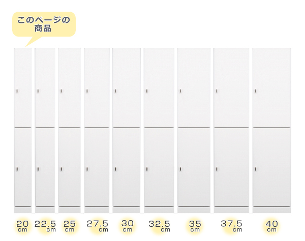 20cm幅から40cm幅を2.5cm刻みにした豊富なサイズ展開で、あらゆるすき間にぴったり設置できます。
