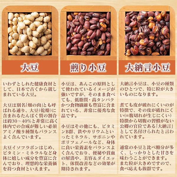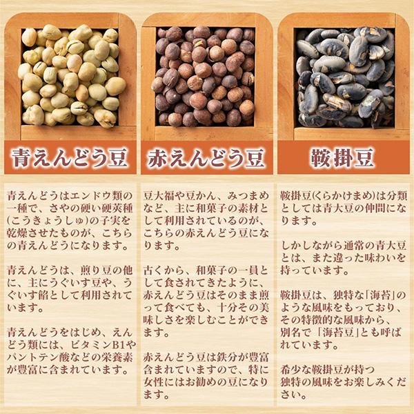 小豆、大豆、黒大豆、鞍掛豆、青大豆、青えんどう豆、赤えんどう豆、赤大豆、大納言小豆