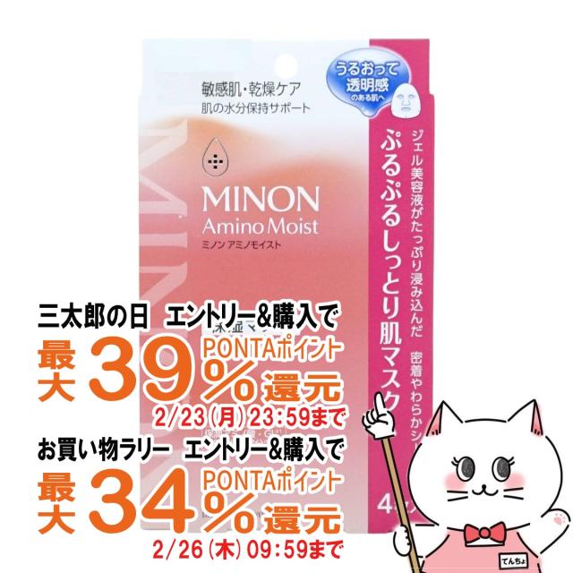 【三太郎とお買い物ラリー 最大39%還元】ミノン アミノモイスト ぷるぷるしっとり肌マスク 22ml×4枚入[保湿マスク/敏感肌/乾燥ケア]MINON 第一三共ヘルスケア[メール便発送OK](6043701)