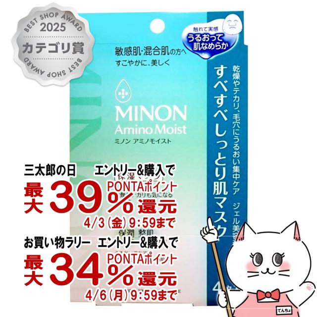 【三太郎の日 お買い物ラリー 最大39%還元】ミノン アミノモイスト すべすべしっとり肌マスク 22ml×4枚入[保湿マスク/敏感肌/乾燥肌]MINON[メール便発送OK](6043703)