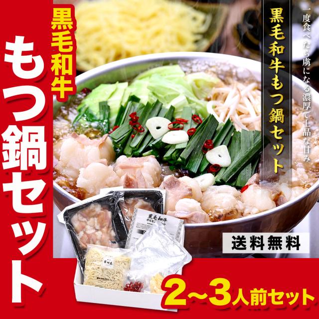 希少な霜降り黒毛和牛もつ鍋2〜3人前セット(小腸/コプチャン300g+特製スープ+ちゃんぽん麺+薬味)ホルモン モツ鍋