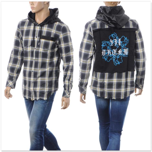 バックサイドにはスウェット素材のパッチデザインを加えインパクト抜群の一枚に仕上ったフード付シャツ。フロントには大き目サイズのダブルポケットを加え、よりカジュアルムードを演出。1枚で着るのはもちろん、ジャケットなどのアウターと合わせたり、Tシャツの上に羽織るなど、さまざまな着こなし方が楽しめます!