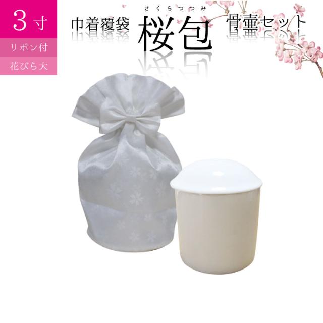 骨袋 骨壷セット 巾着 骨壷カバー 桜包 さくらつつみ 花びら大 リボン付き 3寸 巾着 覆袋 仏具 仏壇 骨壷 骨壺 骨壷カバー 49日 後飾り お悔やみ 供養 犬 猫 ペット供養にも ペットロス