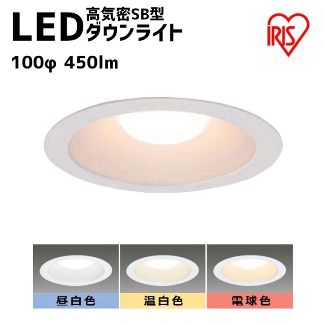 ダウンライト 150φ 100φ led 付ダウンライト LEDダウンライト 高気密SB形LEDダウンライト 450lm 電球色相当 温白色相当 昼白色相当 全3色 高気密 SB形 LED ダウンライト アイリスオーヤマ