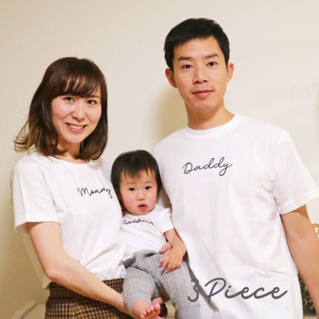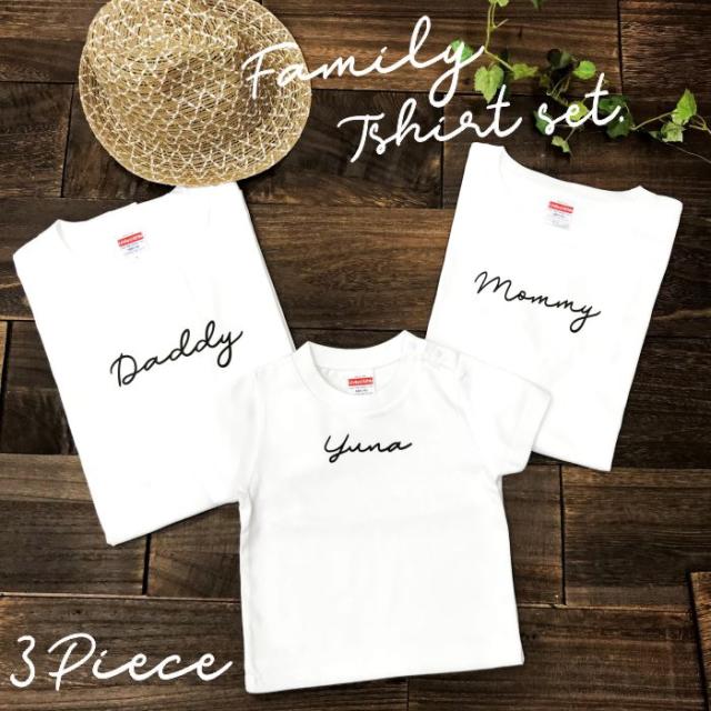 名前入り 親子3点セット サイン風 tシャツ 名入れ 誕生日 手書き風 ロゴ tシャツ プレゼント 名前 出産祝い ギフト キッズ おそろい おしゃれ 筆記体 リンクコーデ お揃い ペア リンクコーデ 家族写真 親子セット 親子ペア ペアルック 家族コーデ DADDY MOMMY