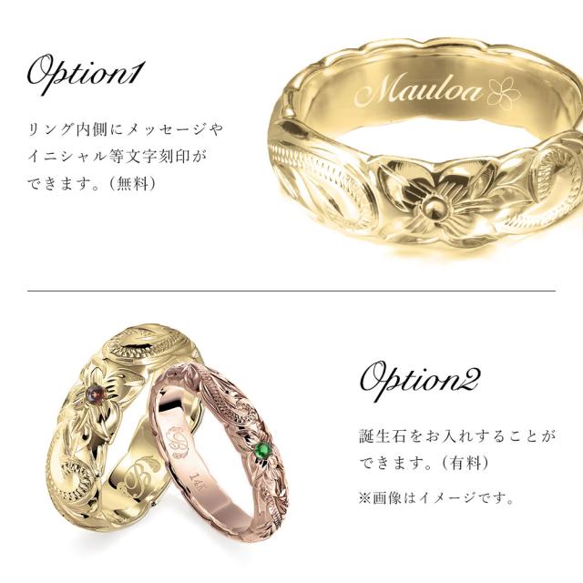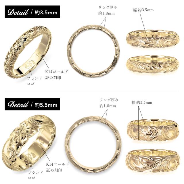 ハワイアンジュエリー 結婚指輪 ペアリング 刻印 無料 誕生石入れ可 指輪 2個セット 専用BOX付 K14 14金 幅約3.5mm 幅約5.5mm 29号まで 大きいサイズ 受注生産 ヴァージンリング リング カップル 夫婦 プレゼント 【品番:GSR201-GSR202P】