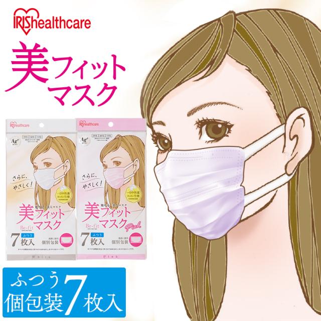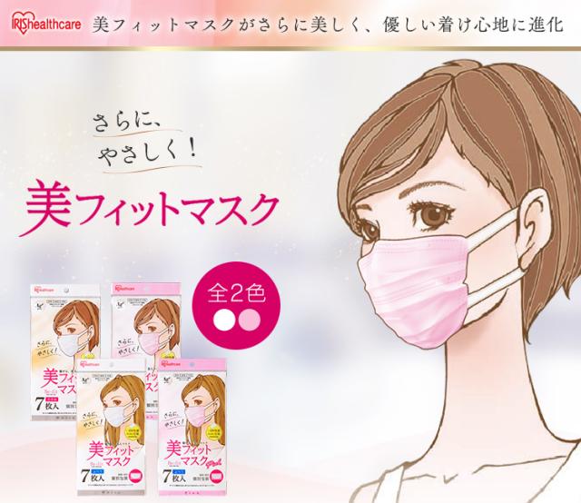 マスク 不織布 美フィットマスク ふつうサイズ 7枚 19PK-FBF7MW・19PK-FBF7MP ホワイト・ピンク 全2色 アイリスオーヤマ