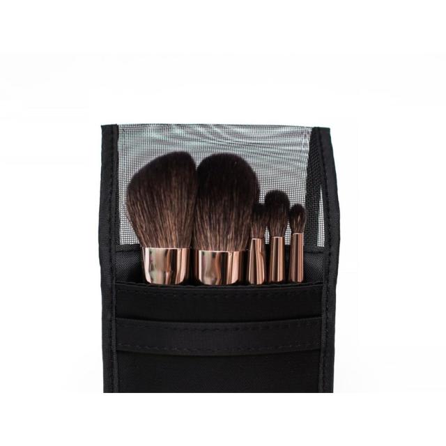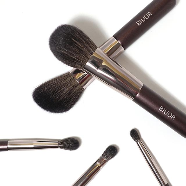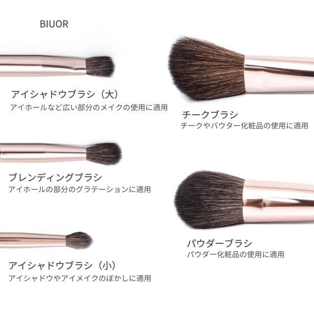 BIUOR 山羊毛 5本メイクブラシセット 携帯用 ミニブラシ 化粧ブラシ 毛量たっぷり 超柔らかい 専用ポーチ付 収納 ケース プレゼント