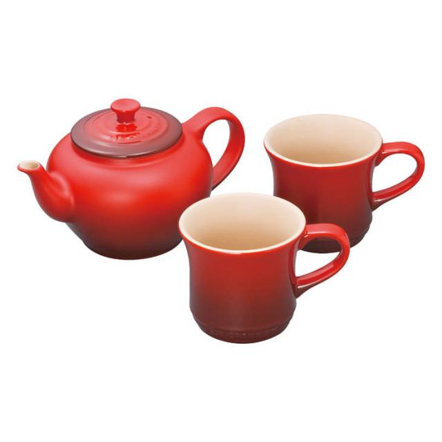 LE CREUSET ル・クルーゼ ル・クルーゼ ティーポット&マグ(SS)(2個入り)セット チェリーレッド 910296-00-06