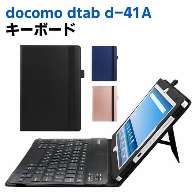docomo dtab d-41A ワイヤレスキーボード タブレットキーボード レザーケース付き ワイヤレスキーボード キーボードケース Bluetooth キーボード バンド開閉式 ケース US配列 日本語入力対応 リモートワーク最適 在宅勤務