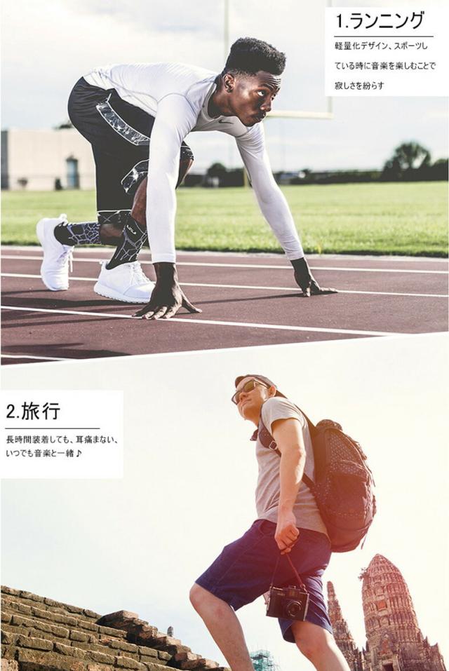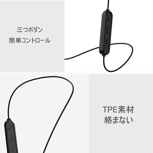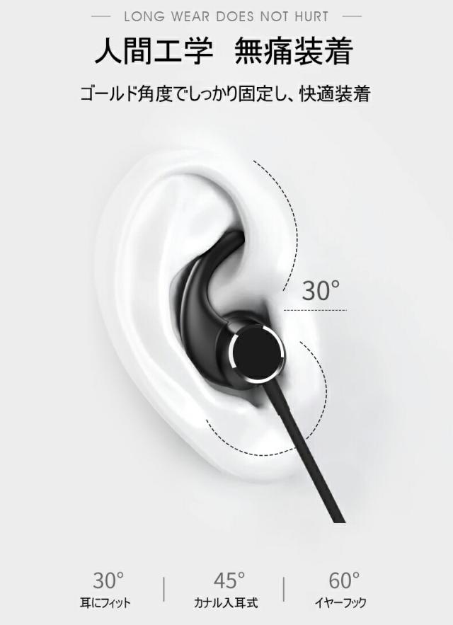 ネックバンド型デザインで、イヤホンは人体工学に基づいたデザインで耳のラインにしっかりフィットするから、安定性が大幅に向上され、長時間着装しても、耳が痛くない。