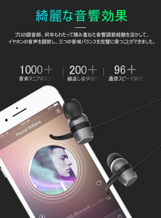 ワイヤレスイヤホン Bluetooth 4.2 最高音質 IPX4 完全防水防滴